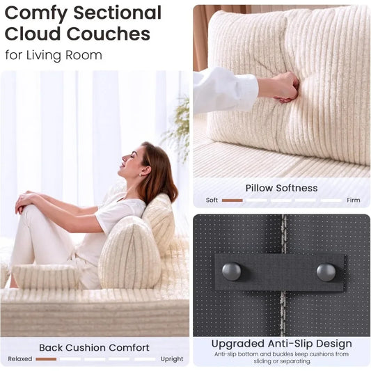 109.5" Modular Sectional Sofa, Modern L-Shape Cloud Sectional Couch with Deep Seat, Comfy Corduroy Fluffy Couch for Living Room
