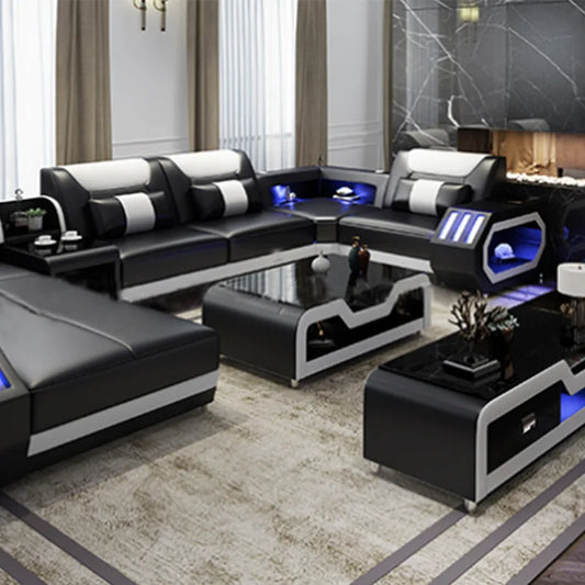 2025 High Quality Modern Luxury smart Leather Sectional Sofa Chairs Set Couch Living Room furniture Sofas With Led