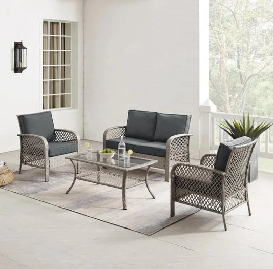 # New Arrival 4-Piece Rattan Patio Conversation Set With Blue Cushions