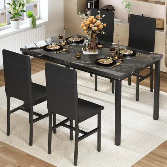 # Hot Dining Table Set For 4, Kitchen Tables And Chair For 4, Glass Dining Room Tables & PU Leather Metal Chairs, Table And Chai