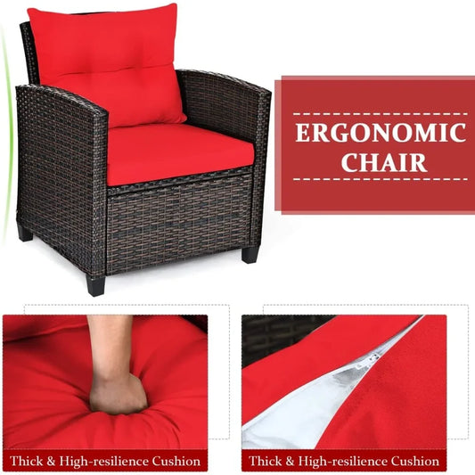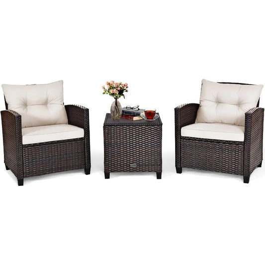 3 Pieces Rattan Wicker Patio Conversation Set with Coffee Table, Cushions, Sturdy Steel Frame, Outdoor Furniture Set