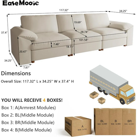 3 Seater Deep Seat Sectional Sofa,Scratch Resistant Faux Leather Material, Oversized Modular Couch for Living Room