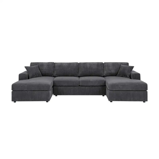 3-Pc Corduroy Double-Chaise Sectional Sofa with Plush Cushions and Modern Design, Comfortable Seating for Living Room, Stylish