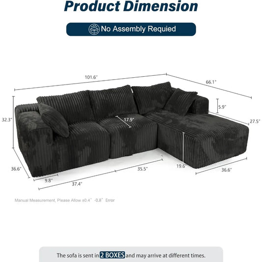 3 Seater L Shaped Sofa with Deep Seat, 101" Cloud Sectional Couch with Chaise, Cozy Modular Couches Sleeper,