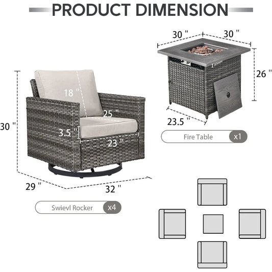Outdoor Swivel Rocker Chairs Set of 4 with Fire Pit Table - 5 Peice Wicker Patio Furniture Set Conversation Set with 50,000 BTU
