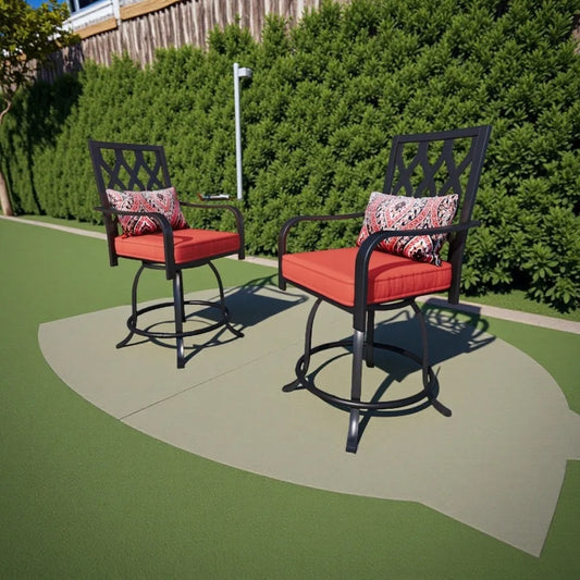 Outdoor Swivel Bar Stools Set of 2, Metal Outdoor Swivel Bar Chairs, Black