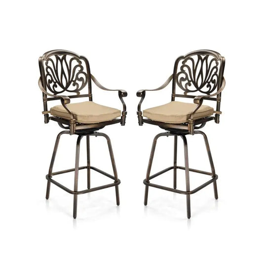 Outdoor Swivel Bar Stools Set of 2, Cast Aluminum Patio Bar Height Chairs, All-Weather Swivel Dining Chairs for Outdoor