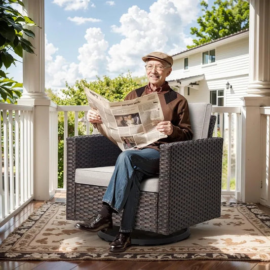 Outdoor Swivel Rocker Patio Chair - 350LBS Weight Capacity Patio Wicker Swivel Glider Chair with Removable Cushions for Porch De
