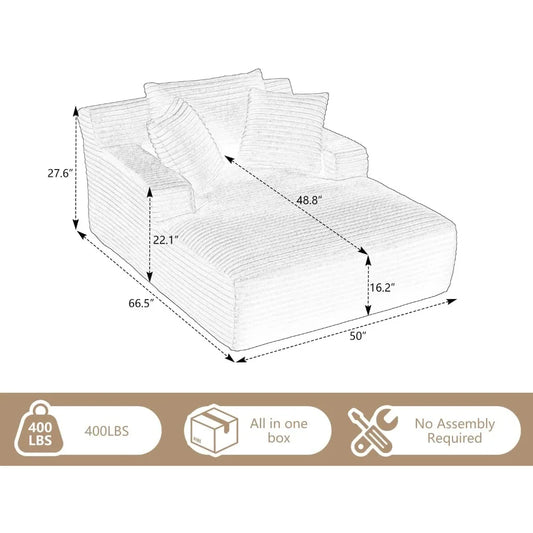 oversized chaise lounge chair indoor, comfy lounge sofa upholstered boneless couch bed with throw pillows and armrests, corduro