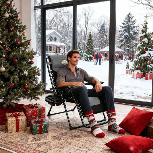 Oversized Padded Zero Gravity Chair, Foldable Patio Recliner, 30" Wide Seat Anti Gravity Lounger