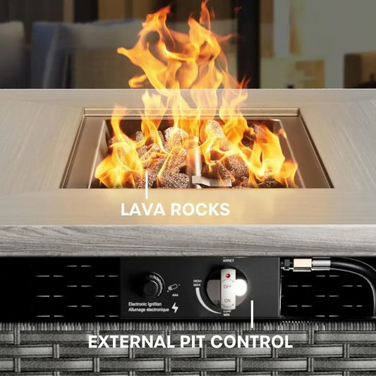 Patio Conversation Set with Fire Pit Table, Grey Resin Wicker Swivel Patio Chairs with Sofa Ottomans Side Table and Fire Table