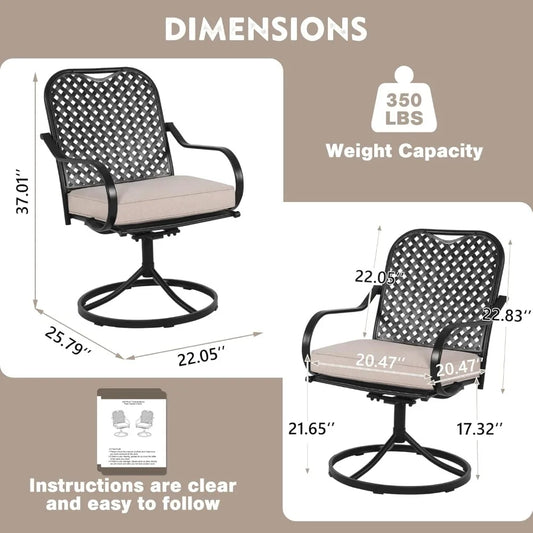 Patio Swivel Chair Set of 2, Heavy Duty Outdoor Dining Chairs with Thickened Cushions, Metal Patio Chairs Gentle Rocker