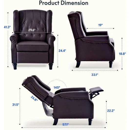 Pushback Recliner Chair for Adults, Mid Century Wingback Accent Chair with Rivet Decoration, Tufted Upholstered Single Sofa