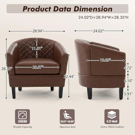 PU Barrel Chair Living Room Chair, Upholstered Sofa Club Chair with Nail-Heads and Solid Wood Legs for Bedroom