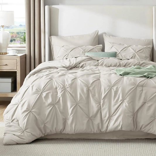 Queen Comforter Set Linen Bed in a Bag Queen Size 7 Pieces GentleSoft™ Pintuck Bed Set Gift for Family Pinch Pleat All Season Co