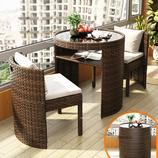 Rattan Garden Furniture Sets Balcony Home Table Chairs Storage Leisure Table and Chair Three-piece Set Outdoor Patio Combination