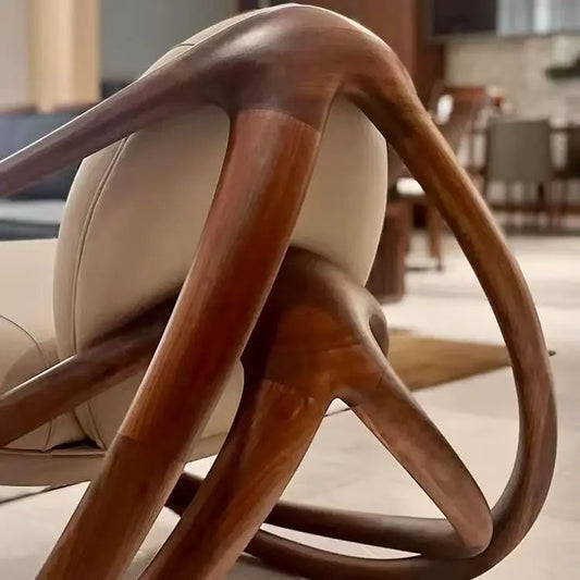 Rocking chair, solid wood balcony, living room, fiberglass casual leather sofa