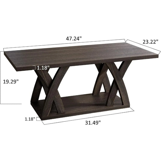 Shelf-Included Farmhouse Coffee Table, Wooden Living Room Table with Open Display, 47 Inch Dark Brown
