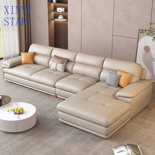 The first layer of cowhide leather sofa living room combination modern simple size apartment cream style leather sofa