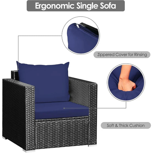 Three Piece Patio Set, Outdoor Rattan Sofa With Cushions, Tempered Glass Tabletop, Wicker Conversation Furniture