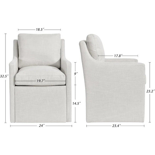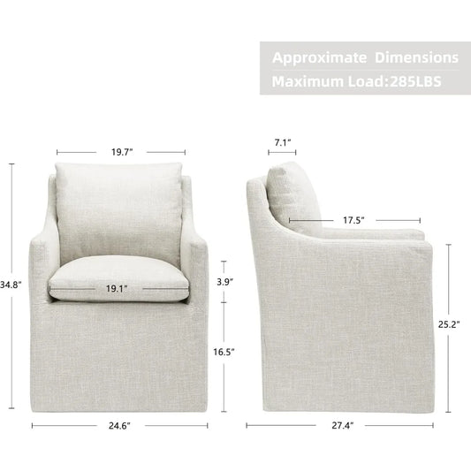 Upholstered Dining Chair with Casters,Linen Armchair for Living Room,Side Deskchair with 4 Casters,Modern Accent Armchair