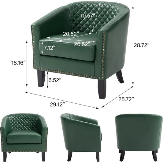 Upholstered Accent Chair, Barrel Club Chair with Silver Nail Head Trim & Legs for Living Room Bedroom Reception Room