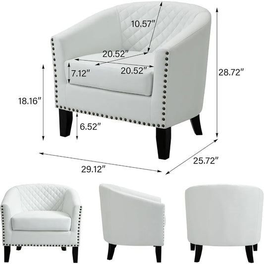 Upholstered Faux Leather Club Chair, Accent Barrel Armchair with Nailed Trim, Comfortable Reading Chair for Living Room and Bedr