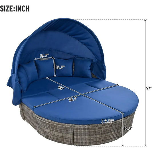 U_STYLE Outdoor Patio Furniture Set Daybed Sunbed with Retractable Canopy Conversation Set Wicker Furniture As same as WY000281