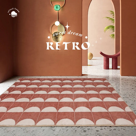 VIKAMA Cashmere Wash Back Carpet Machine Washable Ins Style Checkerboard Living Room Carpet Cloakroom Carpet Home Decoration