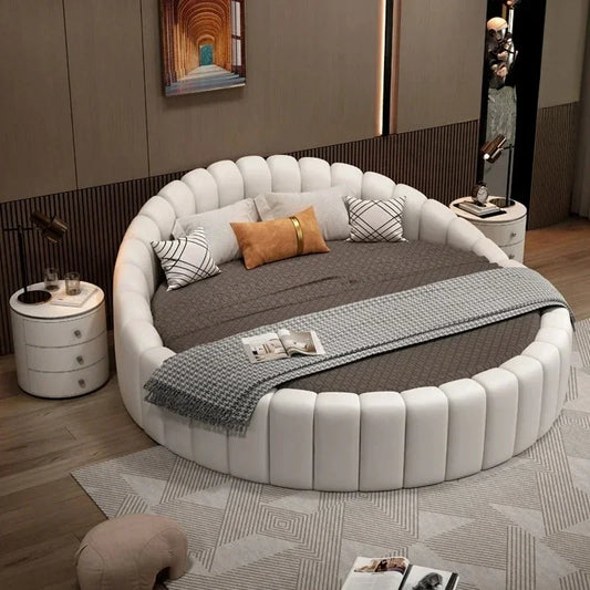 W round Bed Double Modern Simple round Leather Princess Large and Small Apartment Type Master Bedroom Marriage Bed Hotel
