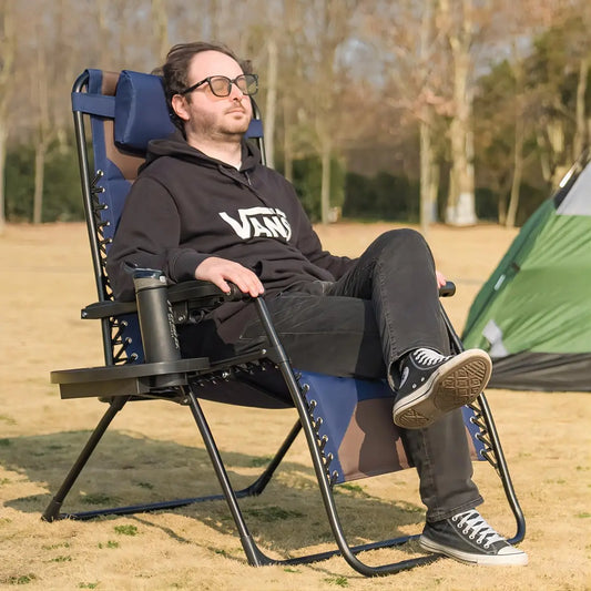 Zero Gravity Chair Oversized Padded Recliner with Adjustable Headrest & Cup Holder - 600D Oxford Folding Lounge Chair