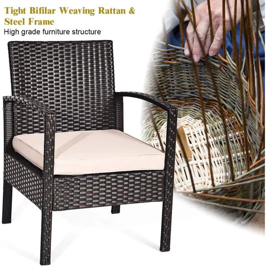 4 Pieces Patio Furniture Set, Outdoor Wicker Rattan Patio Conversation Furniture Set with Waterproof Cushion and Table