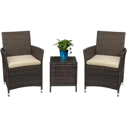 #For Patio Porch Furniture Sets 3 Pieces PE Rattan Wicker Chairs with Table Outdoor Garden Furniture Sets (Brown/Beige)&