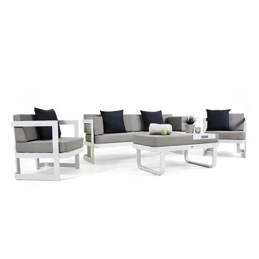 #v White Modern Cheap Patio Conversation Loveseat Couch Furniture Outdoor Garden Aluminum Sectional Sofa Set on Sale