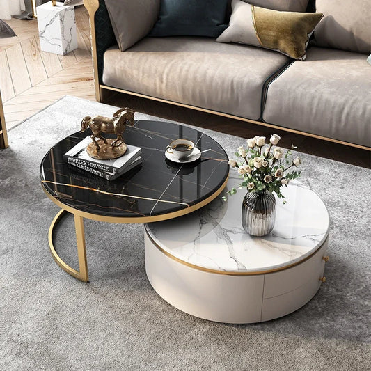 #Luxury Furniture Marble Top Gold Stainless Steel Frame Sectional Glass Round Coffee Table