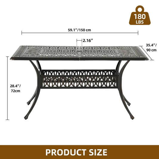 59'' Cast Aluminum Outdoor Patio Dining Table for 6-8 Person with Umbrella Hole