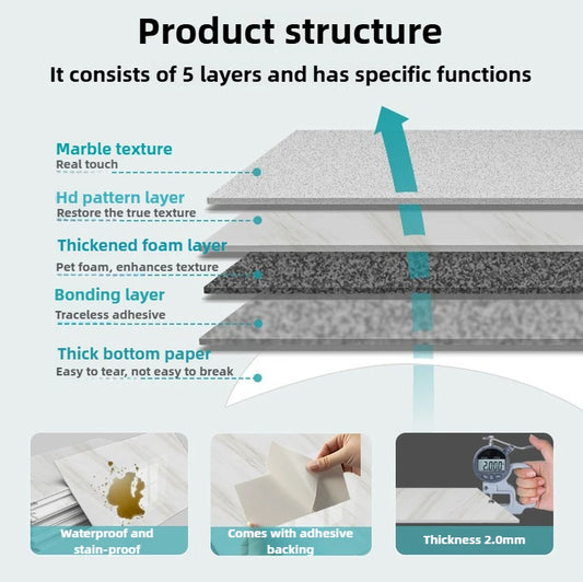 5pcs 30x60cm PVC Kitchen Backsplash Panel Marble Self-Adhesive Waterproof Oil Proof for Stove Cabinet Renovators