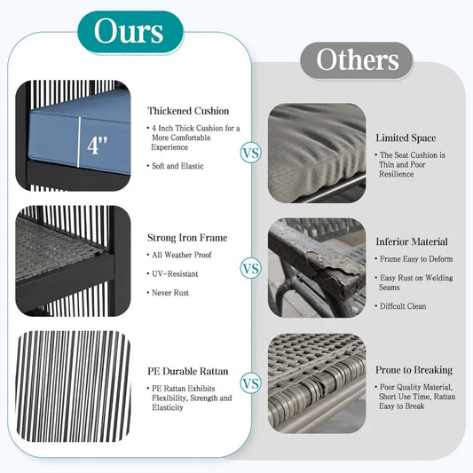 5Pcs Patio Set, Wicker Outdoor Sectional with Cushions, Includes Coffe Table and Ottomans, Furniture for Pool, Garden, Patio