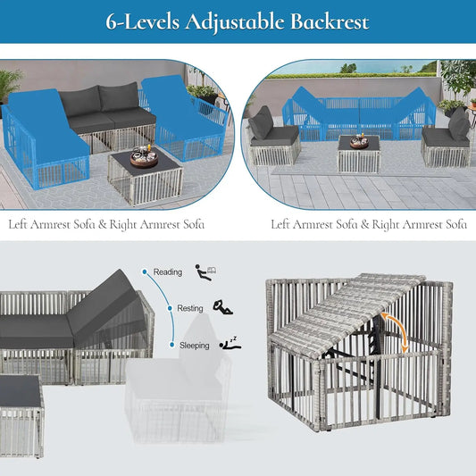 7 Pieces Outdoor Patio Furniture Set, Wicker Outdoor Sectional Conversation Couch Set with Adjustable Backrest Sofa