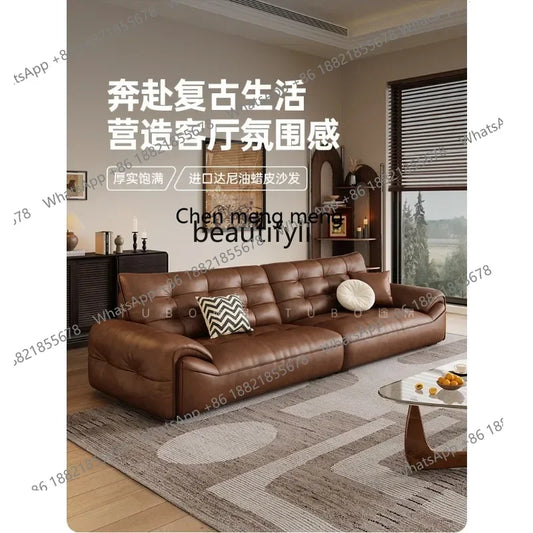 A182 C Oil wax leather sofa first layer cowhide retro living room straight row high backrest