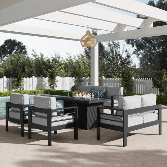 Aluminum Furniture Set with Fire Pit Table, 5 Pieces Patio Sectional Conversation Chat Sofa Modern Seating Set