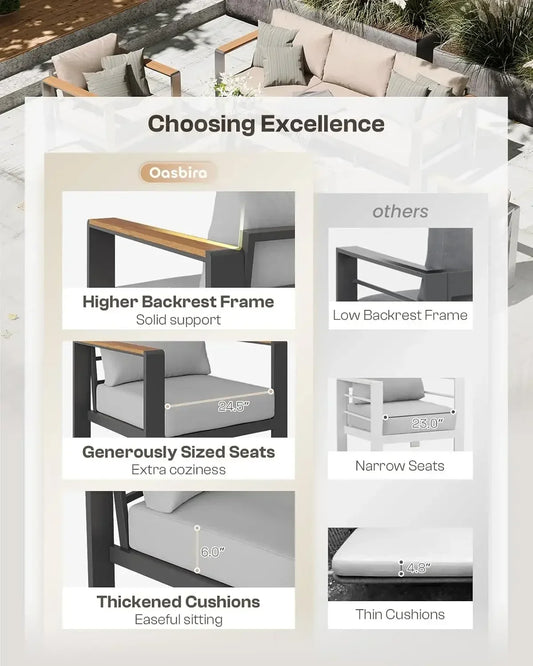 Aluminum Outdoor Patio Furniture Set, 5-Piece Sectional Conversation Set with 6″ Thick Cushions & Coffee Table for Porch, Balcon