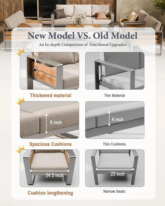Aluminum Outdoor Patio Furniture Set, 7 Seats Outdoor Sectional with Coffee Table, Patio Conversation Sets with Upgraded Armrest