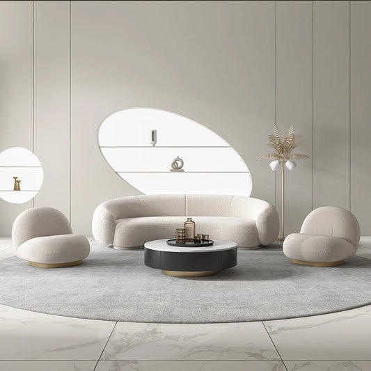Arc-shaped sofa, small unit, internet celebrity, light luxury homestay villa, designer, lamb plush leather art sofa