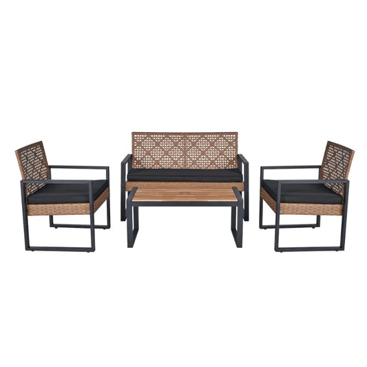 Brown Rattan Outdoor Patio Furniture Set 4 Pieces Garden Sofa Table Chairs with Cushions Weather Resistant