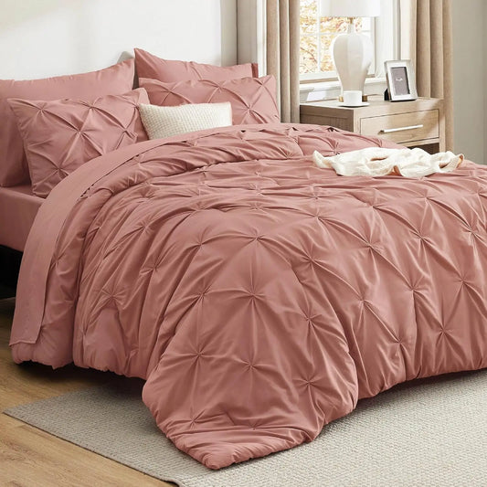 California King Comforter Set Dusty Pink Bed in a Bag California King 7 Pieces GentleSoft™ Pintuck Bed Set Gift for Family Pinch