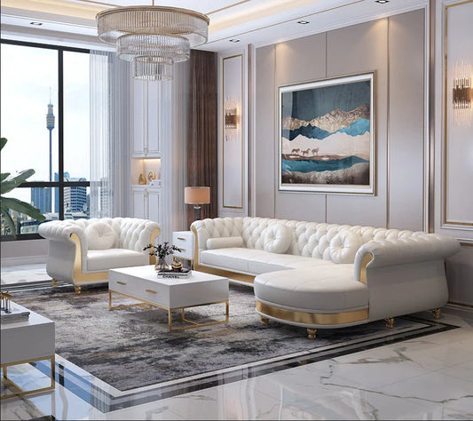 Canape Modern Living Room Furniture Couches Upholstered Lounge Leather Sectional Tufted White Sofa Set