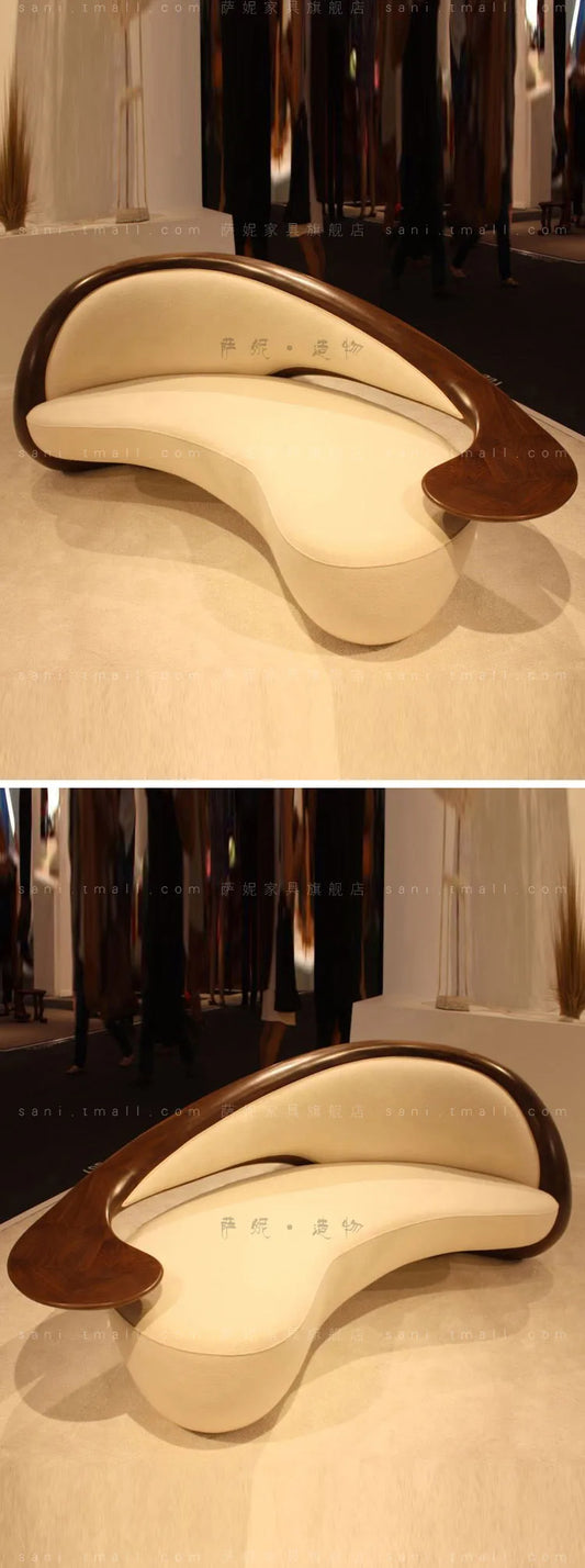 c6601 Wabi-sabi commercial sofa, three-person, curved, solid wood fabric Nordic