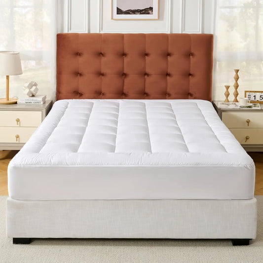 Cloud-Like Mattress Topper, Mattress Pad for Back Pain Relief, Breathable Quilted Fitted Mattress Protector for Hot Sleepers