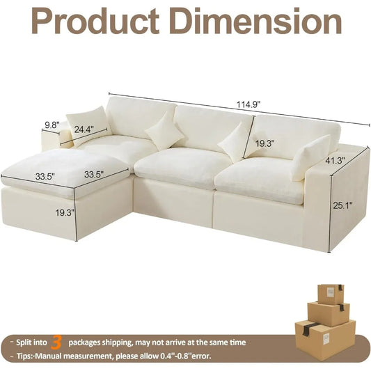 Cloud Sectional Couch, Boneless Sofa for Living Room, Modular Sectional Sofa with Deep Seat, Fluffy Comfy Couch